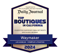 Waymaker is honored that Daily Journal has again named the firm one of California’s Top Boutiques. Every year, Daily Journal conducts a competitive nomination process to recognize the leading 20 boutique law firms in the Golden State. This is Waymaker’s second such recognition, which is based on Waymaker’s recent successes in civil and criminal matters, as well as the quality of the Waymaker team …
